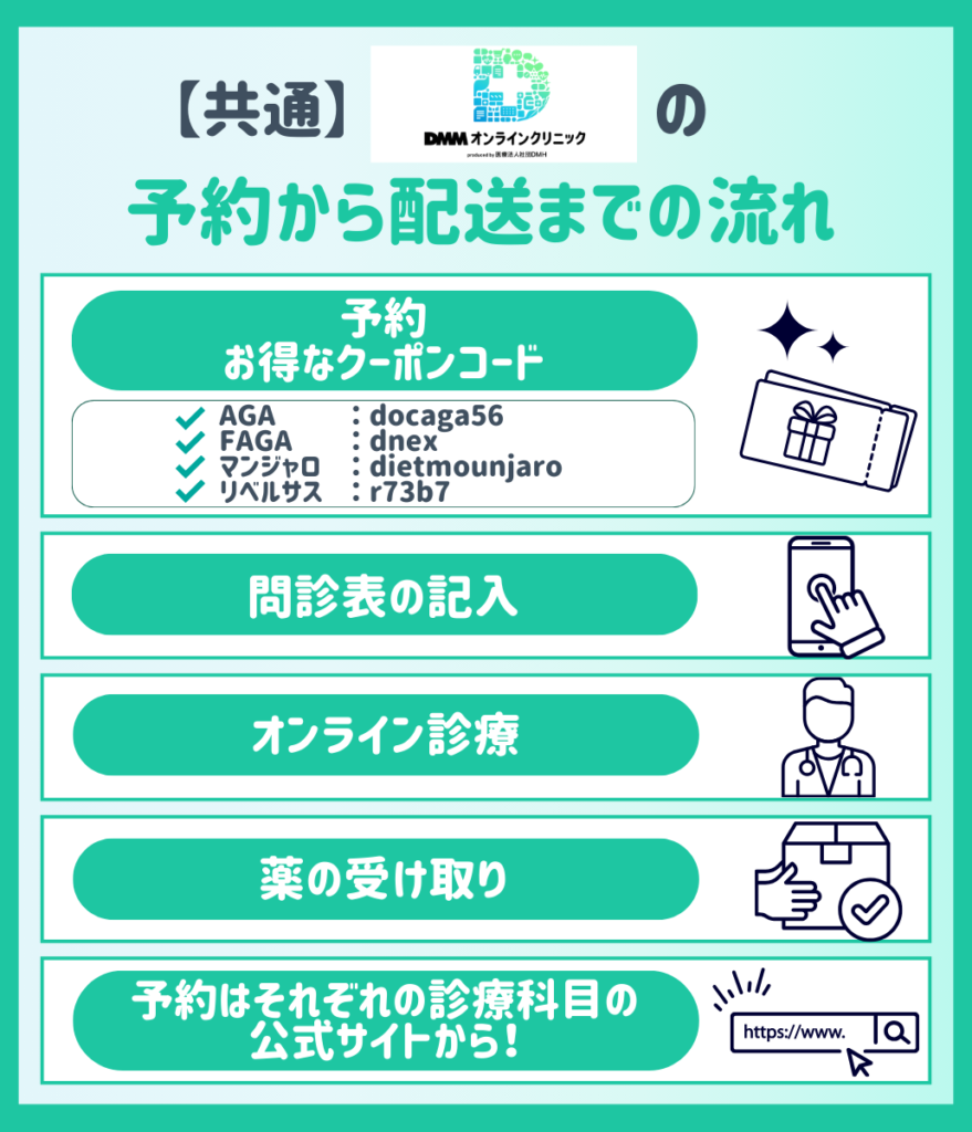 【共通】DMMオンラインクリニックの予約から配送までの流れ