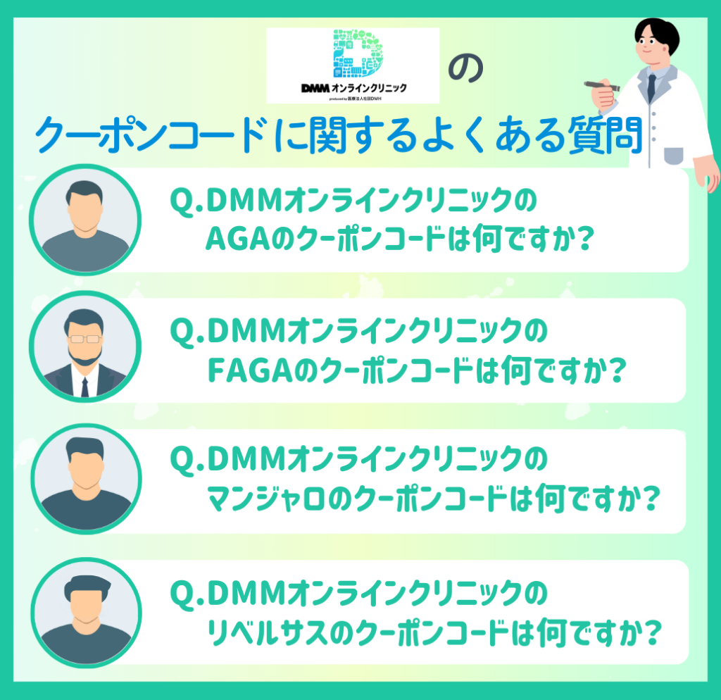 - DMMオンラインクリニックのAGAのクーポンコードは何ですか?