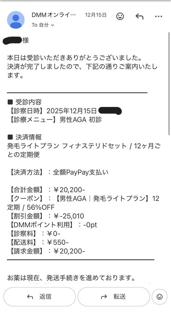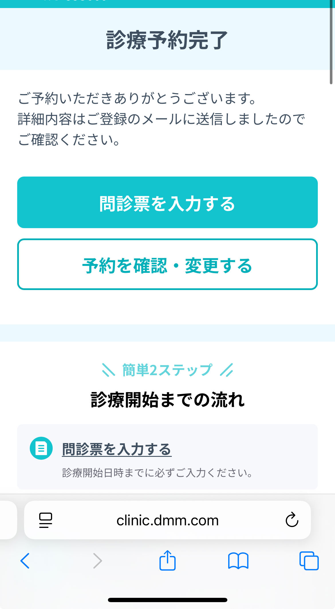 また、DMMの会員登録の作業を含めても、予約~登録~問診まで約10分で終えられました。