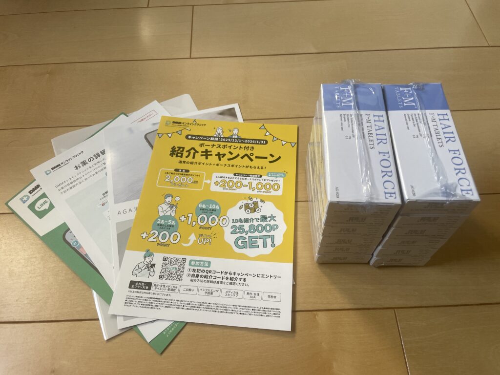 箱を開けると、薬や領収証、AGA治療ガイドなど丁寧に梱包されて入っていました。