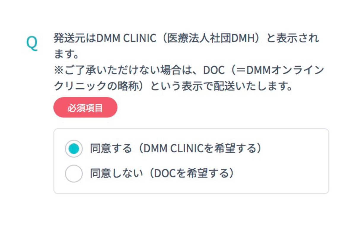発送元は問診時に、「DMM CLINIC」か「DOC」のどちらかを選択します。