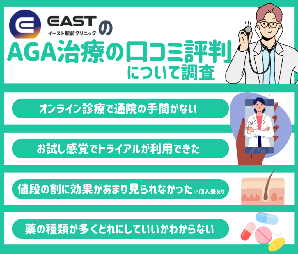 イースト駅前クリニックのAGA治療の口コミ評判について調査