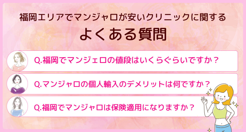 福岡エリアでマンジャロが安いクリニックに関する、よくある質問についてまとめています。