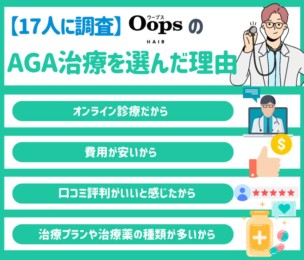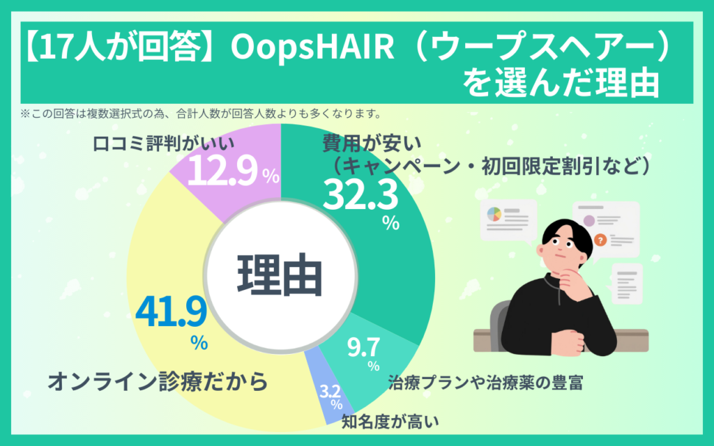 【17人に調査】OopsHAIR(ウープスヘアー)のAGA治療を選んだ理由
