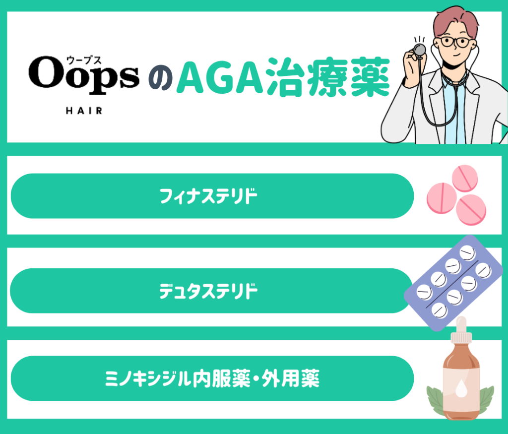OopsHAIRでは、医師の診察を経てAGA治療薬が処方されています。
