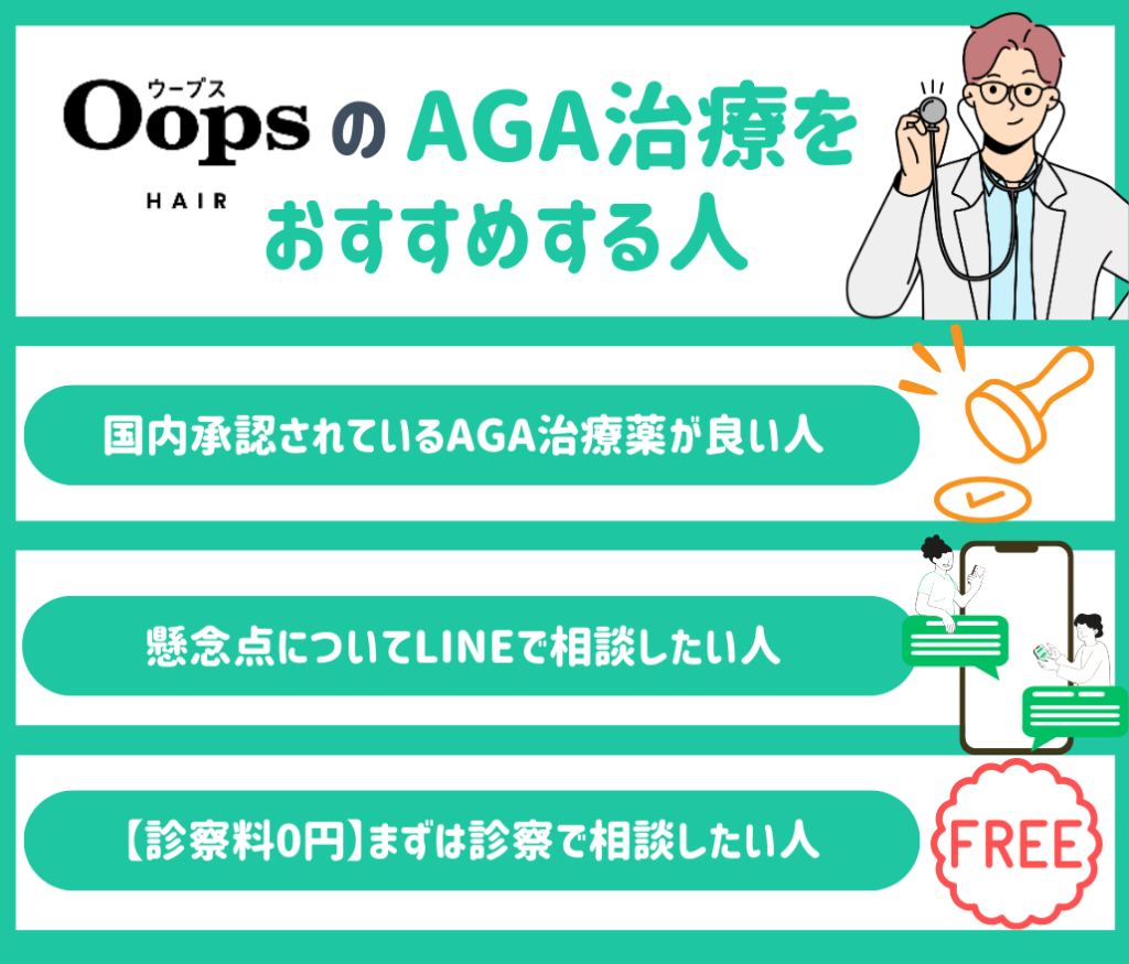 OopsHAIRのAGA治療は、オンライン診療ならではの利便性を重視する人に向いています。