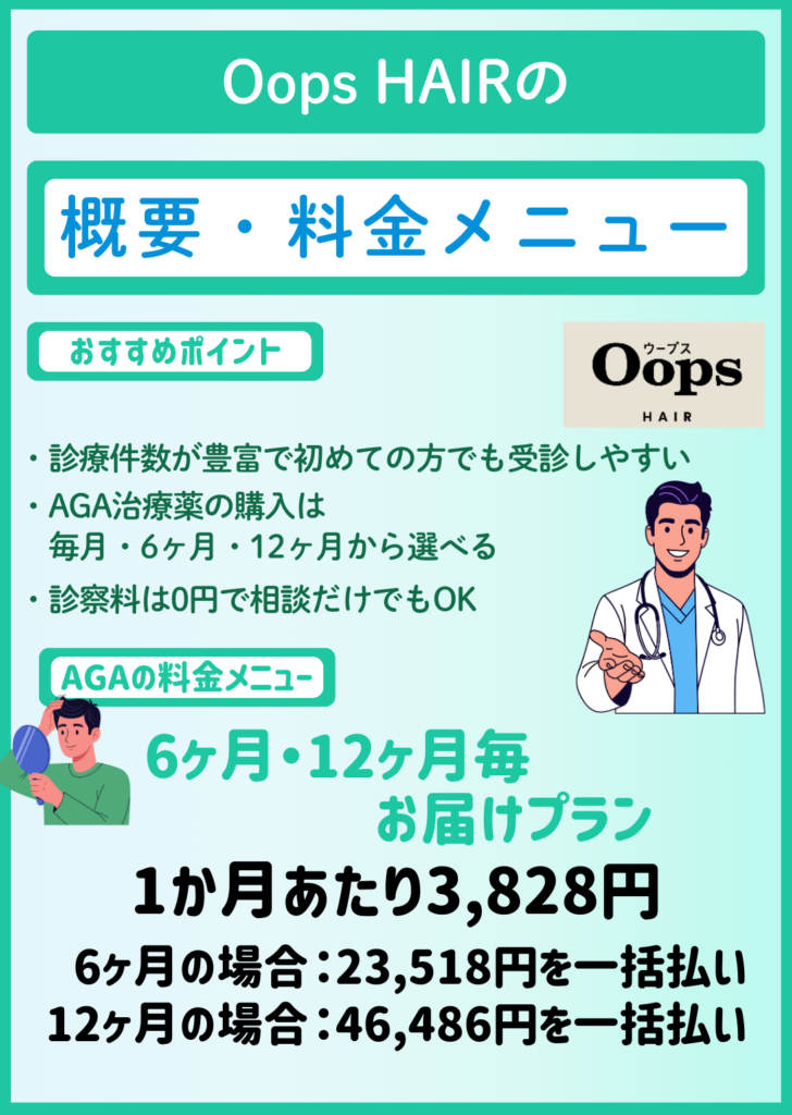 ここでは、OopsHAIRの診療時間や診察料など、サービスの概要を解説します。
